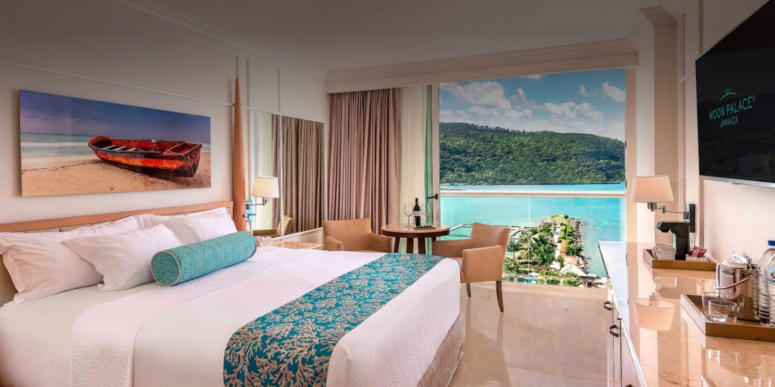 Admire stunning views of the sparkling Caribbean in this state-of-the-art suite, plus the delightful all-inclusive amenities that come with your luxurious Moon Palace Jamaica vacation, such as 24-hour room service and more.