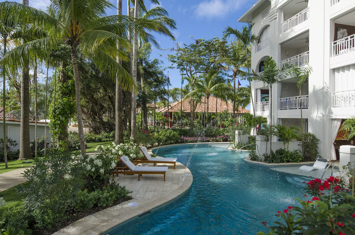Located on the third and fourth floors of the chic Caribbean Village, these quaint rooms feature elegant furnishings, a four-poster, king-size bed, HD smart TV, and a private balcony showcasing serene views of the resort’s beautifully landscaped gardens. The en-suite bathroom is outfitted with a shower or bathtub with shower and penny glass tile detailing.