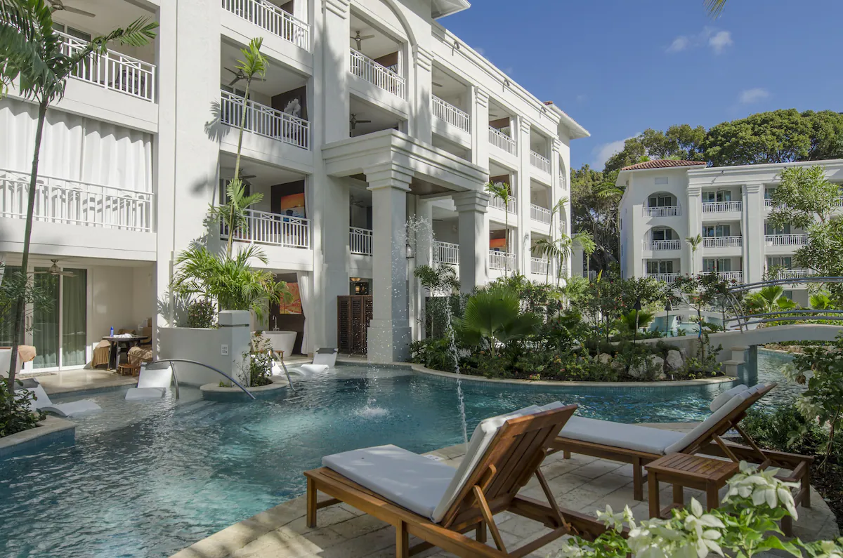 These exotic Butler Suites are set along the longest river pool in Barbados. The spacious master bedroom features a four-poster, king-size bed, HD smart TV and a fully stocked bar. A separate living room boasts a comfy seating area, second HD smart TV, and a private patio featuring a Tranquility Soaking Tub for two and zero-entry access into the Crystal Lagoon river pool. The en-suite spa-style bathroom is outfitted with a dual-control walk-in shower, double basin vanity and a luxurious circular tub in the center of the space.